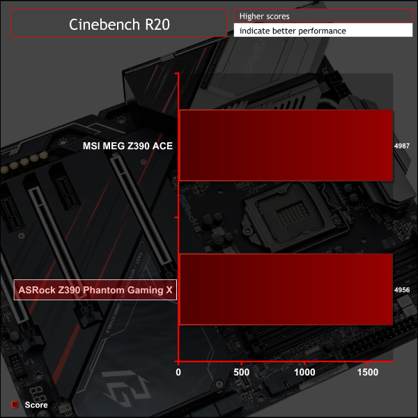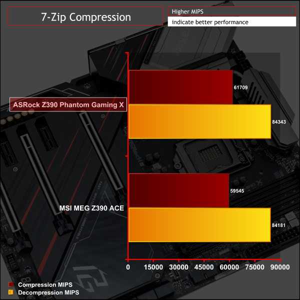 CPU performance is in line with expectations for a high-end Z390 motherboard. ASRock, like MSI, fully exploits all the performance available in the Core i9 9900K by making the maximum all-core Turbo speed (4.7GHz) persist indefinitely beyond Intel's normal turbo durations.