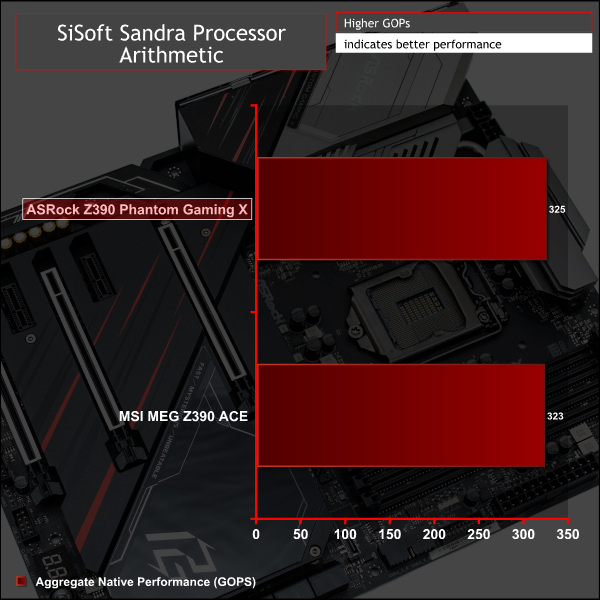 SiSoft Sandra 2018 is a multi-function utility program that supports remote analysis, benchmarking and diagnostic features for PCs, servers, mobile devices and networks. We run the application’s processor arithmetic test to gauge the CPU performance on each tested motherboard.