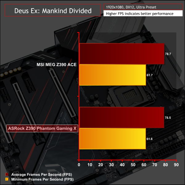 Gaming performance is broadly similar between both Z390 motherboards and reflects the CPU and memory performance.