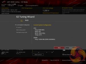 The EZ Tuning Wizard is the ASUS automated overclocking utility which will tune both the CPU and DRAM. Like most automated utilities a user of modest overclocking prowess can manage better but it's handy for getting setup with an overclock in a hurry.