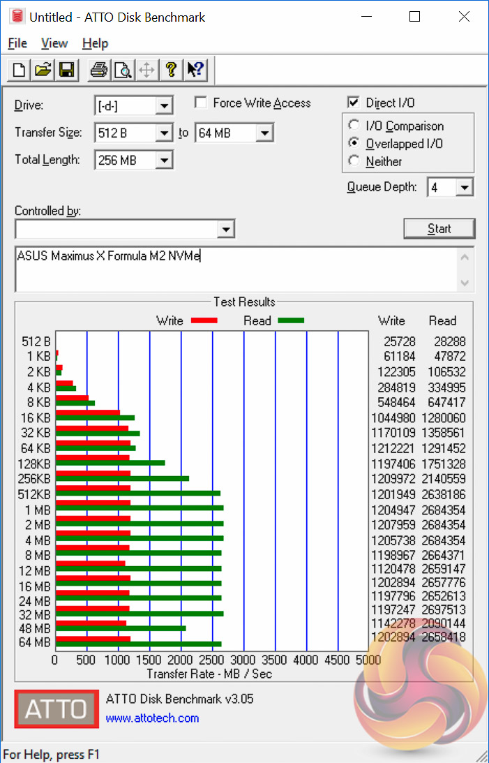 The ATTO disk benchmark is a Windows-based utility for testing storage performance of any storage drive or controller. We use the default benchmark setup.