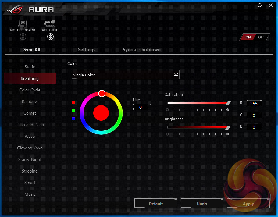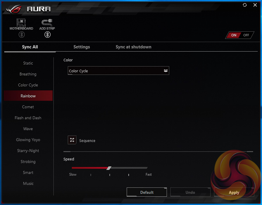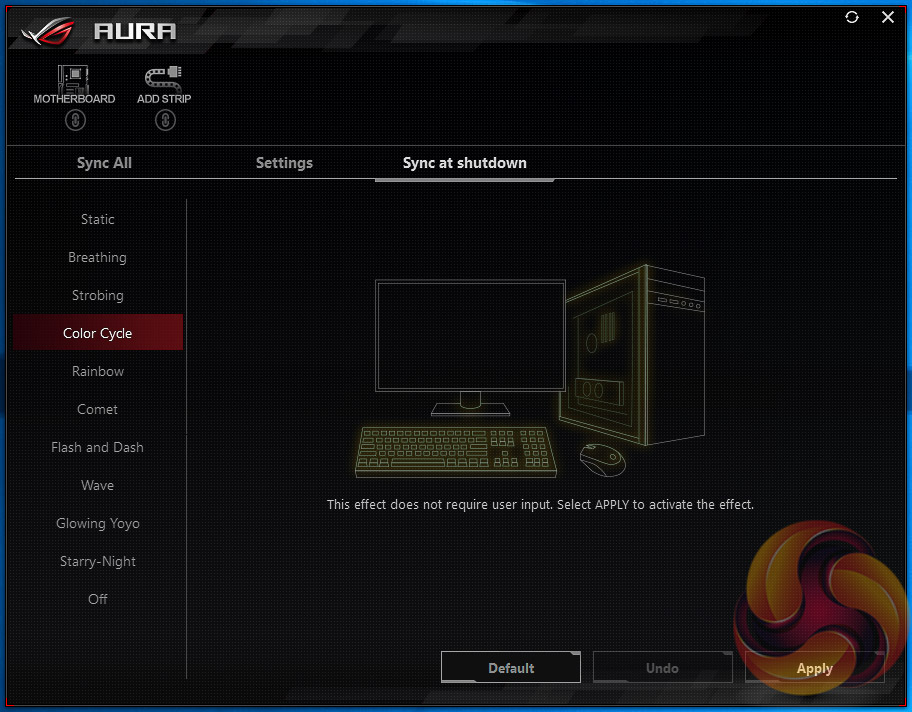 The range of LED modes is still the same but the way LED strips are captured and managed as separate entities is an improvement on the previous AURA software whereby a strip was just treated as another zone on the motherboard. Note the “Add Strip” option along the top. With the Maximus X Formula you can add up to four more strips, two of the RGB type and two of the digitally addressable type.