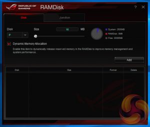 ROG RAMDisk serves a different function, effectively creating a new system disk from RAM which the user can use in Windows Explorer to deposit files on as they so wish. RAMCache II, by contrast, reserves an amount of system memory to use as a cache and what files are written to that are largely application controlled.