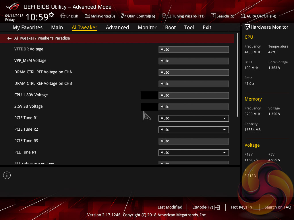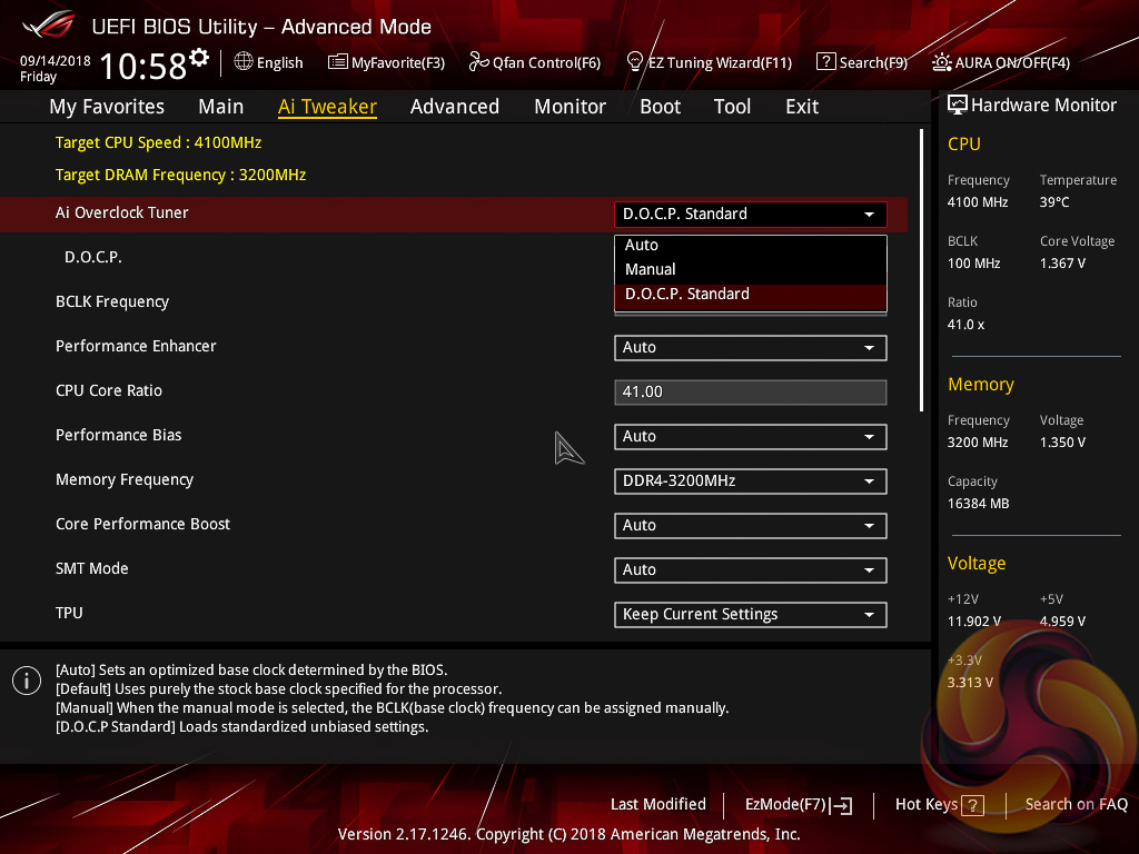 AI Tweaker is the UEFI tab which contains the vast majority of performance tuning settings pertaining to the CPU and DRAM. From here you can set XMP (D.O.C.P) profiles, overclock the CPU, set all the various voltages and voltage operation modes, change the Load Line Calibration (LLC) and considerably more.