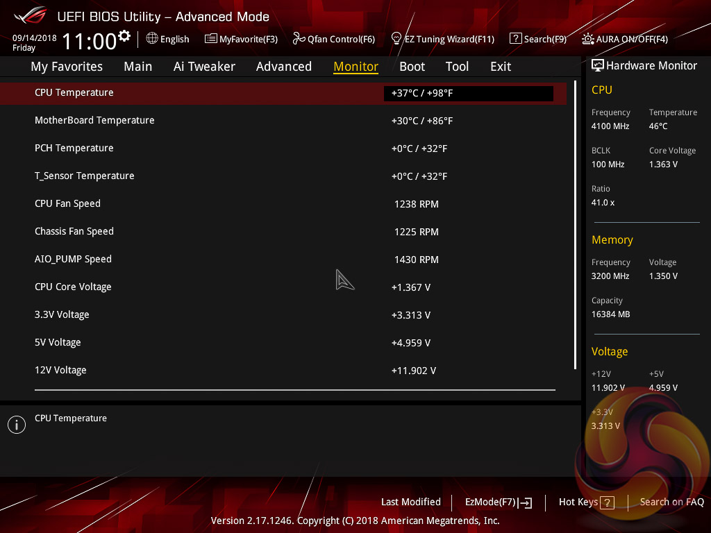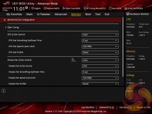 The Monitor tab will allow you to instruct the UEFI how to handle temperature data from the various sensors as well as what to do with fan speed profiles. For example, where a fan speed profile is temperature dependant you can choose which temperature sensor to use.