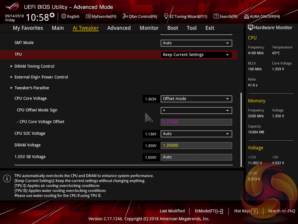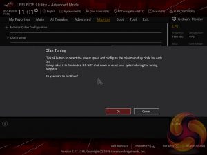 We have tried the automated ASUS overclocking utility, EZ Tuning Wizard, before and it provides your CPU and memory with a crude automatic overclock depending on which options you select and the hardware you are using. In our case it provided 3.5GHz for the Ryzen 7 2700 and our memory was left unchanged at 2133MHz JEDEC when running from optimised defaults.