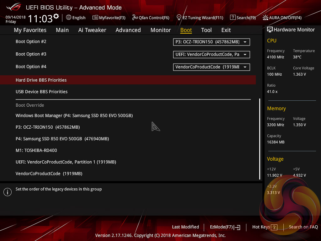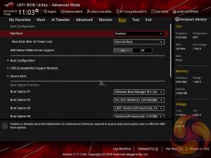 The Boot tab is as expected in delivering the key boot options such as secure boot, boot priority, boot override and boot compatibility options.