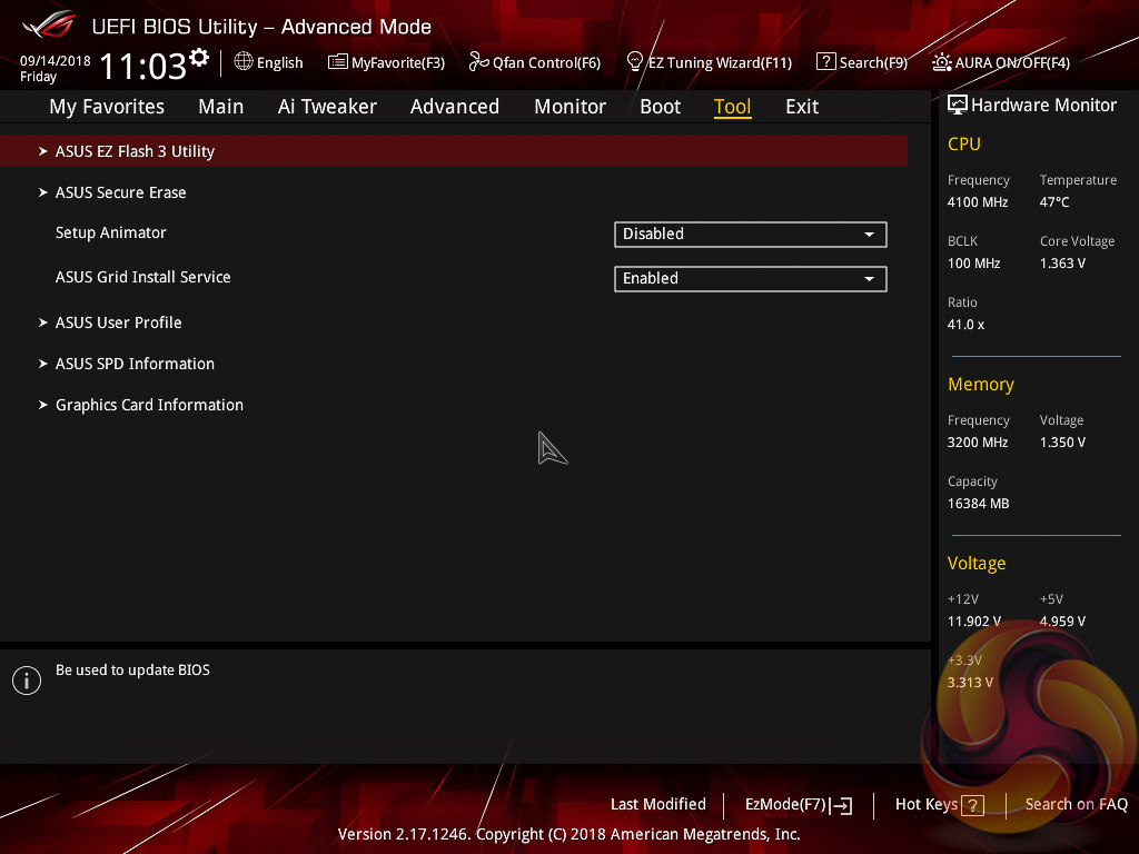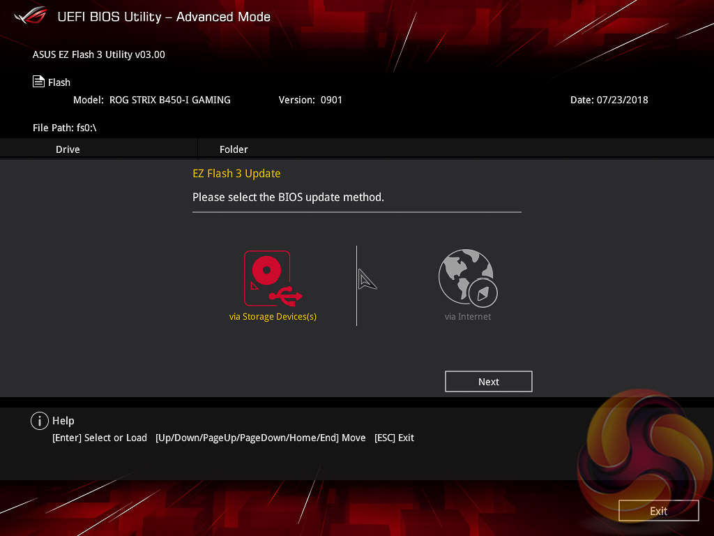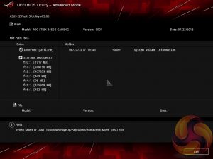 The EZ Flash utility is very simple to use and allows the UEFI to be updated from either a local disk or the internet using the Intel I211-AT Gigabit Ethernet adapter, but not over the onboard WiFi module.