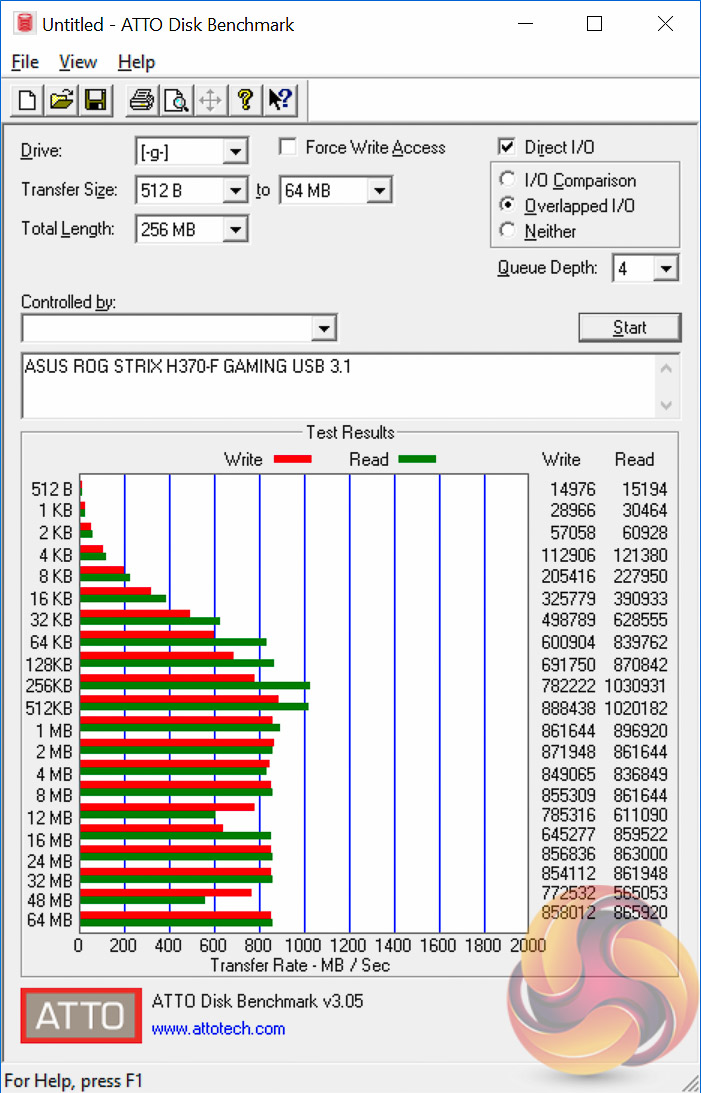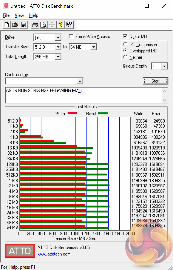 The ATTO disk benchmark is a Windows-based utility for testing storage performance of any storage drive or controller. We use the default benchmark setup.