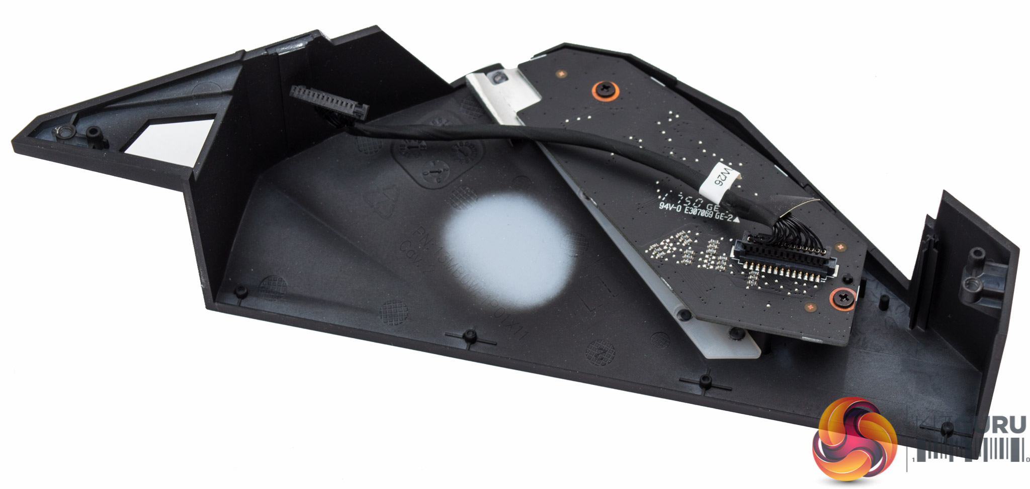 The rear shroud is easily removable with a few screws, it has within it a separate PCB that hosts the LED lighting and this plugs into a dedicated connection on the motherboard.