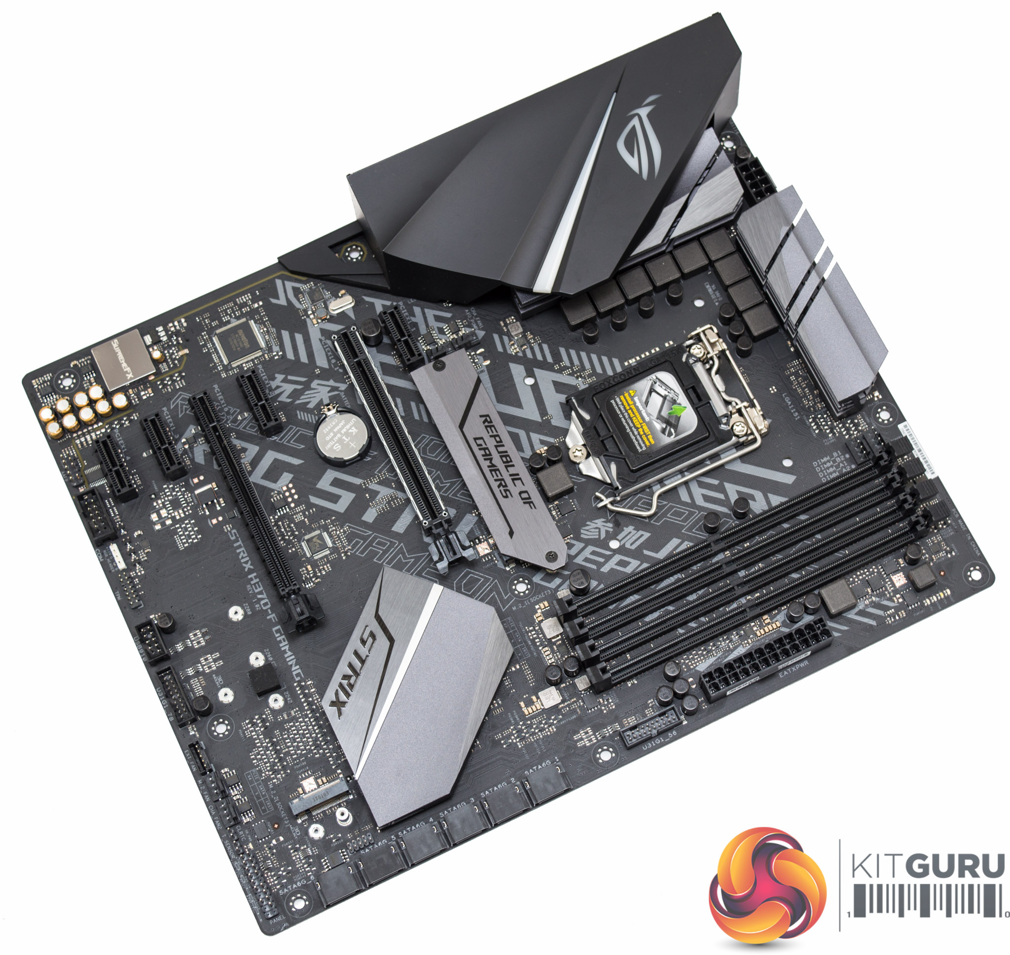 The printed grey text across the motherboard's PCB is somewhat peculiar, though, including phrases like “Game On”, “ROG Strix”, “Republic of Gamers” and “Join the Republic of Gamers”. ROG motherboards of past have usually been more subtle and refined than this so hopefully this doesn't become a new trend.