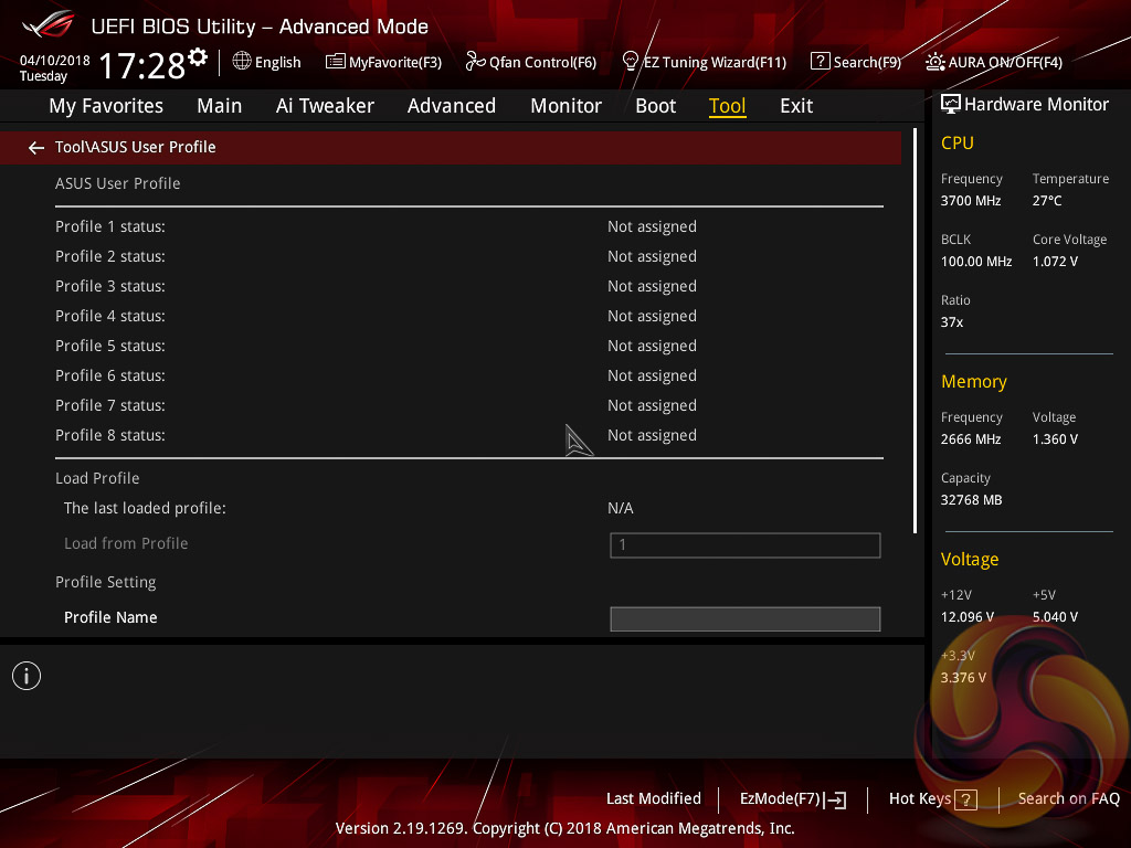 ASUS User Profile, called ASUS Overclocking Profile on Z370, allows UEFI settings to be saved to a file or to UEFI memory so they can be reloaded later or shared with other users.
