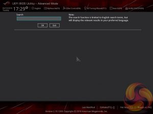 The search function allows a text string to be searched against all the UEFI parameters. It isn't a smart search so doesn't have an auto-fill function and will not find similar items to your search string i.e. M.2 when M2 is searched.