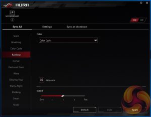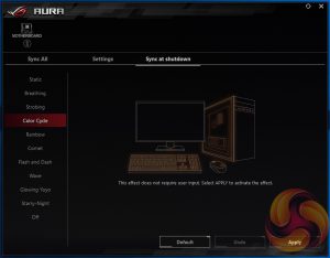 ASUS has revised the design of its AURA RGB software since we assessed it with Z270. Gone is the confusing use of the word “Independent” for what was Shut Down LED behaviour, ASUS has now labelled it as such.