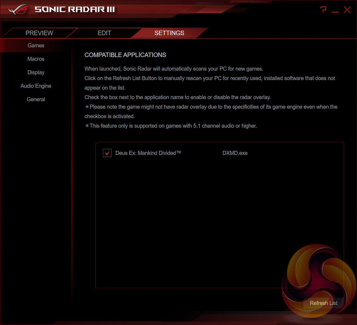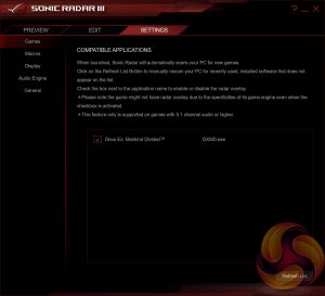 ASUS Sonic Radar III is an application that translates positional audio signals into an “audio map” that identifies where specific noises originated from in supported games. A number of PC anti-cheat platforms (PunkBuster, Steam VAC) are rumoured to prohibit the use of Sonic Radar III so any usage will need to be with caution.