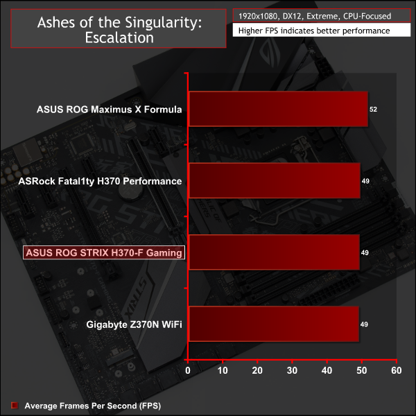 Ashes of the Singularity: Escalation is a Sci-Fi real-time strategy game built for the PC platform. The game includes a built-in benchmark tool and was one of the first available DirectX 12 benchmarks. We run the CPU-focused benchmark using DirectX 12, a 1080p resolution and the Extreme quality preset.