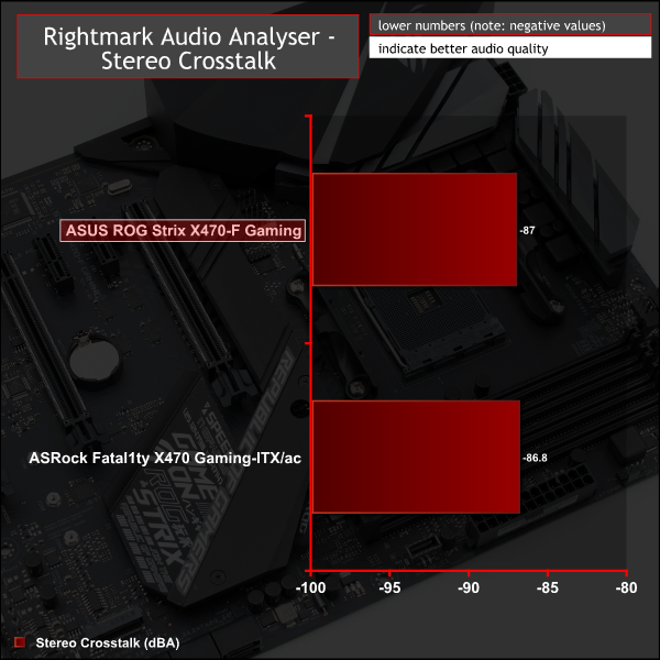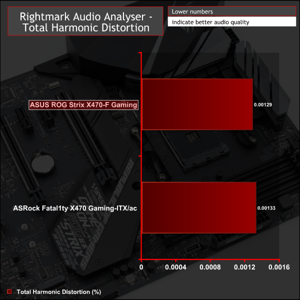 Rightmark Audio Analyser is a freeware benchmarking utility designed to objectively test the performance characteristics of audio solutions. We setup a line-in line-out loop and execute the record/playback test before generating the results report you see below. A sampling mode of 24-bit, 192 kHz is tested where available. If unavailable the closest alternative operating mode available is used and clearly marked.