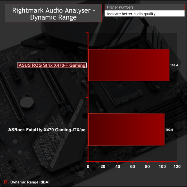 Audio performance returned a score of Very Good, with 7 Excellent and 1 Very Good rating in each of the main categories. The performance is in line with what we've seen from other Realtek ALC1220 codec based motherboards including Z370 motherboards using the same codec.