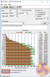 The ATTO disk benchmark is a Windows-based utility for testing storage performance of any storage drive or controller. We use the default benchmark setup.