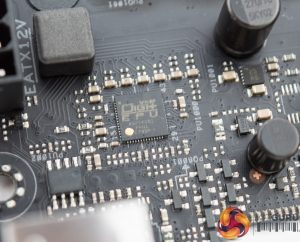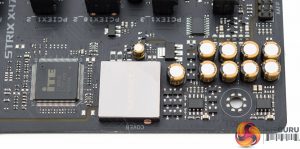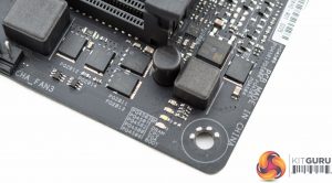 The PWM controller is a custom-packaged ASUS unit marked ASP1405I which is likely an International Rectifier solution. KitGuru has seen this controller before on the ASUS ROG Maximus X Formula so it is likely a high-end unit.