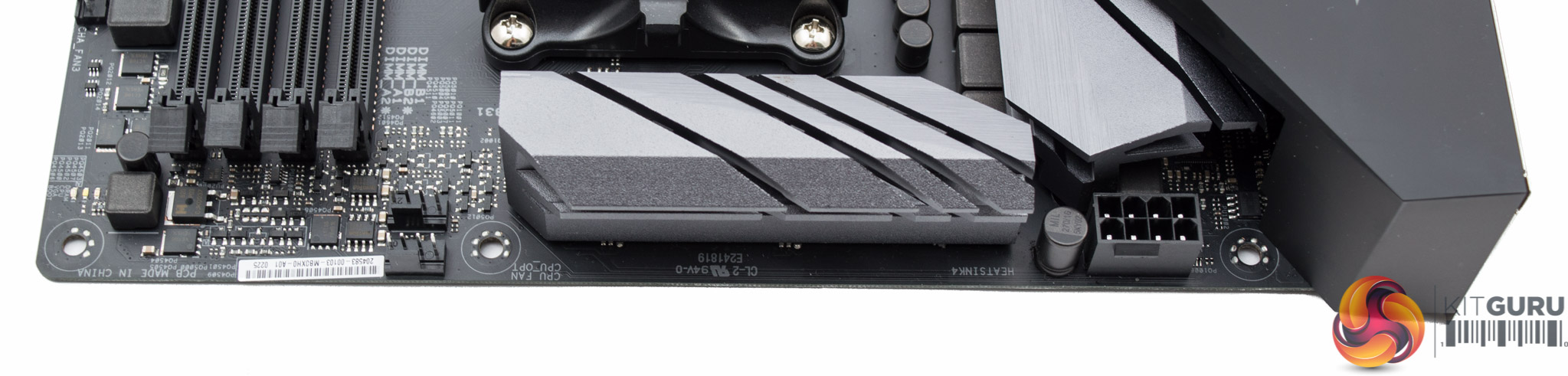 The primary M.2 slot, with 32Gbps of PCIe 3.0 x4 bandwidth, is located beneath a significant heatsink assembly. A quick dissection reveals this is formed of three constituent pieces, one for the PCH, one for the M.2 slot and then a third piece which links the two together.