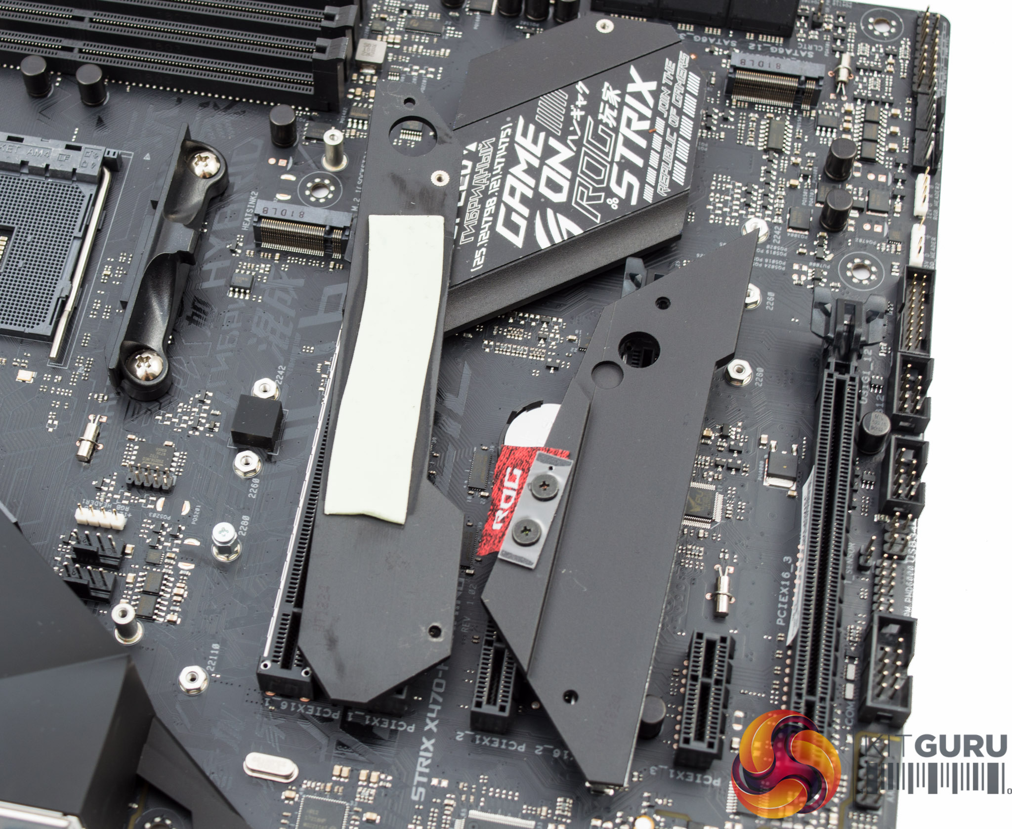 ASUS provides six SATA ports, the default complement of the chipset, as well as a USB 3.1 front panel connection which serves out the USB 3.1 bandwidth provided by the AMD X470 chipset. ASUS Q-LED diagnostic LEDs are on hand to assist with troubleshooting during the first build and any future overclocking endeavours.