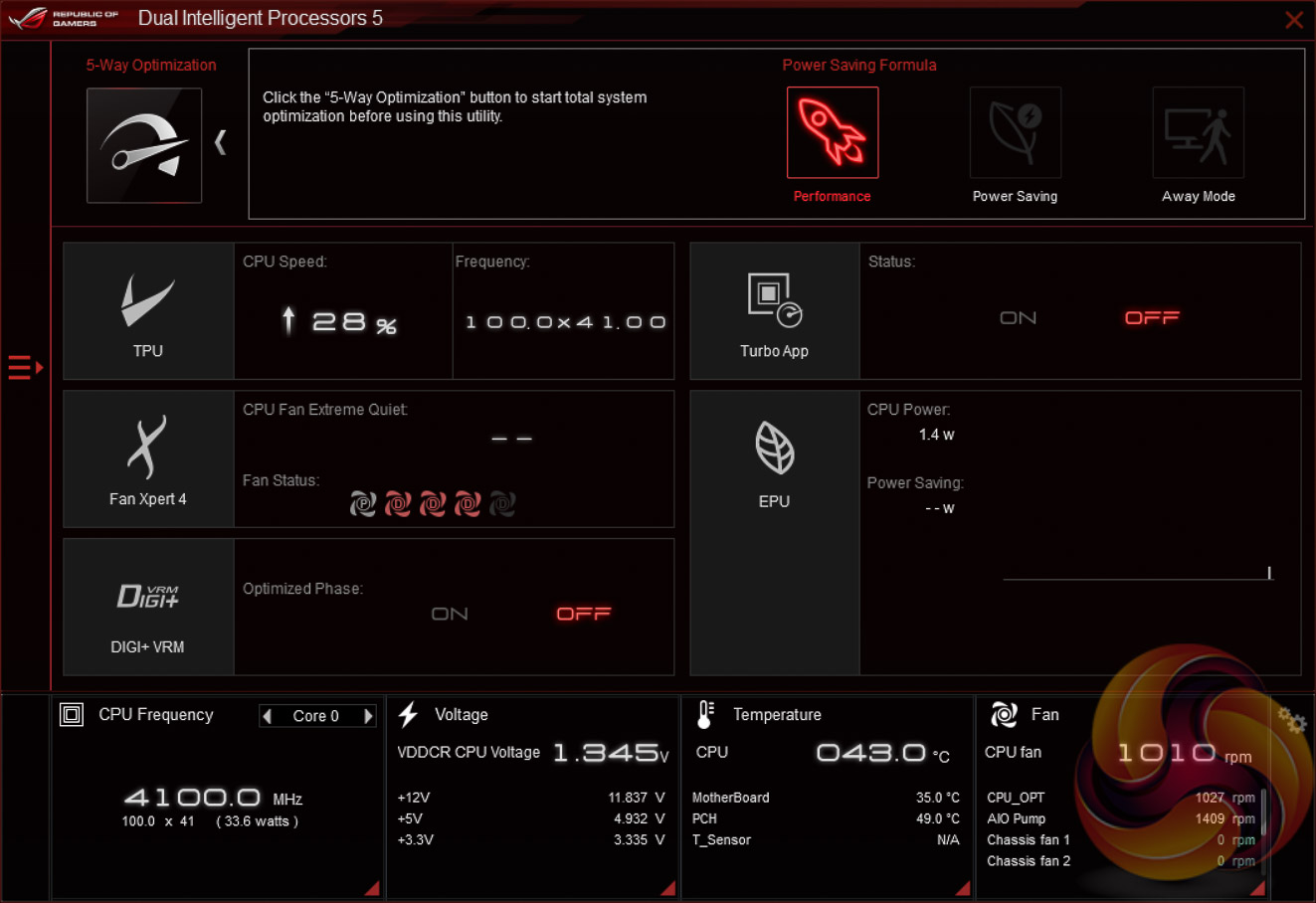 The main software utility for the ASUS motherboard range is the multi-function AI Suite III (Dual Intelligent Processors 5). It contains within it a significant number of utilities including the EPU and TPU, the Turbo App for application-specific turbo behaviour, Fan Xpert 4, on-the-fly overclocking support, a cleaning utility and an ASUS software updating tool.
