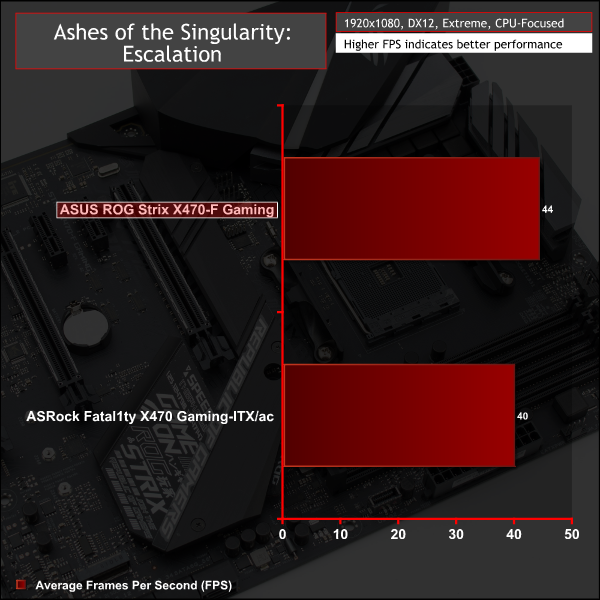 Ashes of the Singularity: Escalation is a Sci-Fi real-time strategy game built for the PC platform. The game includes a built-in benchmark tool and was one of the first available DirectX 12 benchmarks. We run the CPU-focused benchmark using DirectX 12, a 1080p resolution and the Extreme quality preset.