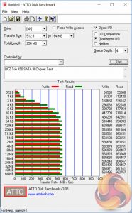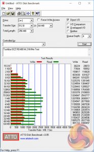 The ATTO disk benchmark is a Windows-based utility for testing storage performance of any storage drive or controller. We use the default benchmark setup.