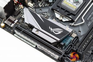 The thermal pad will then help remove heat from the M.2 drive, passing it into the main heatsink which will mean the M.2 can dissipate heat at a faster rate than on its own relying on ambient airflow.