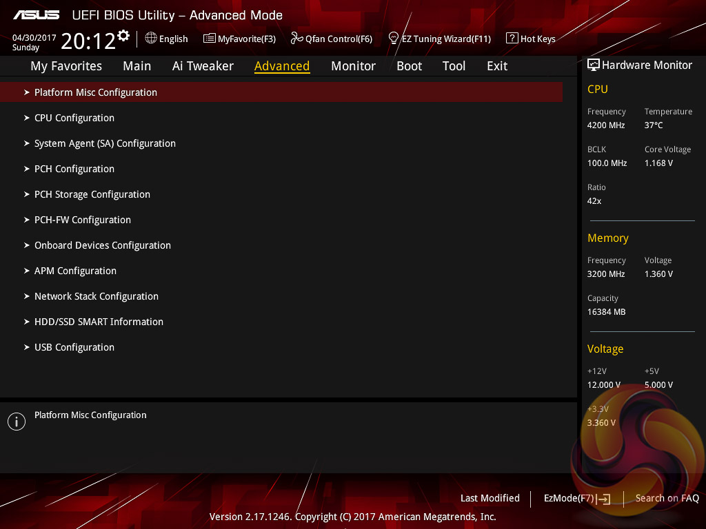 There is a significant selection of performance and compatibility parameters to be found under the Advanced section should the need arise. As well as a number of other peculiar settings related to the functions of onboard devices, LEDs, USB and storage controllers and much more.