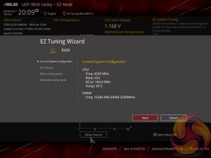 The EZ Tuning Wizard is the ASUS automated overclocking utility which will tune both the CPU and DRAM. Like most automated utilities a user of modest overclocking prowess can manage better but it’s handy for getting setup with an overclock in a hurry.