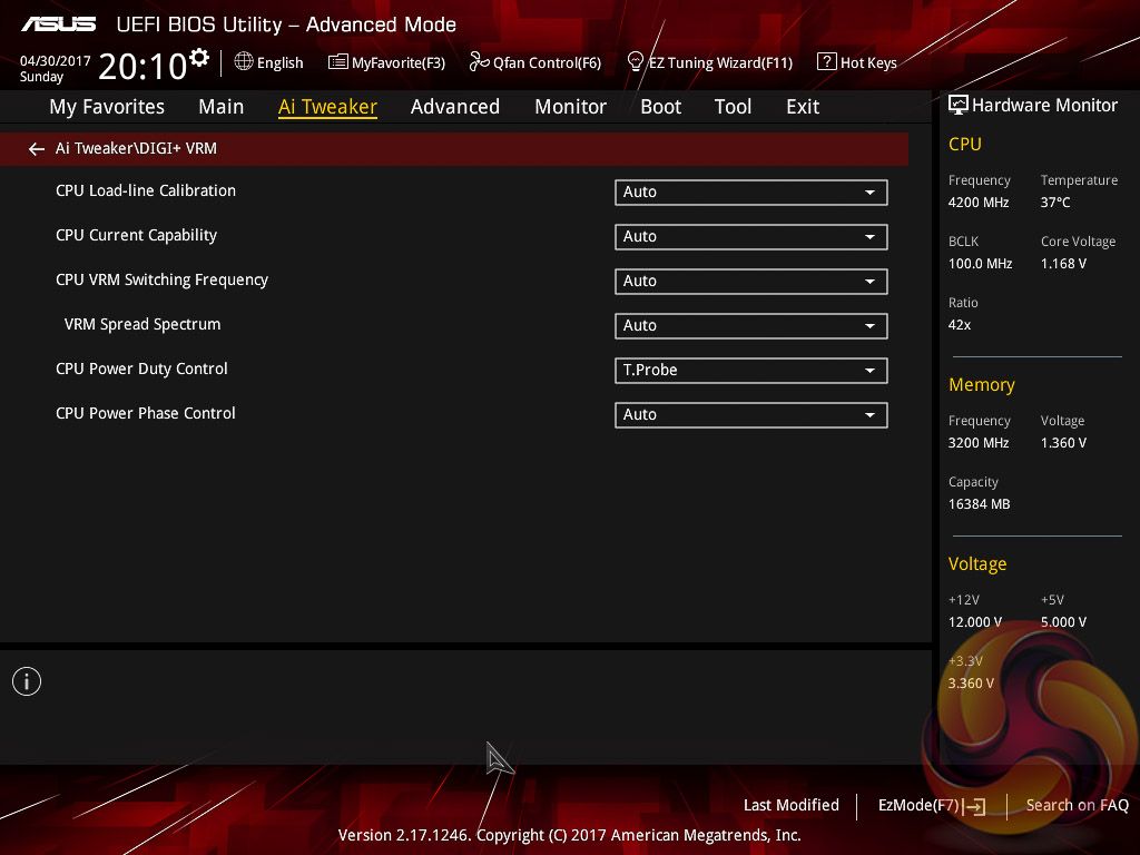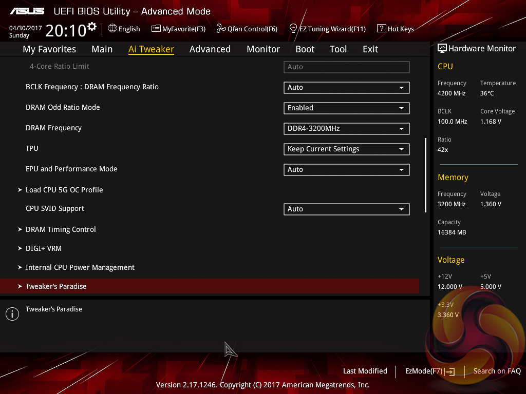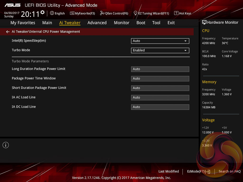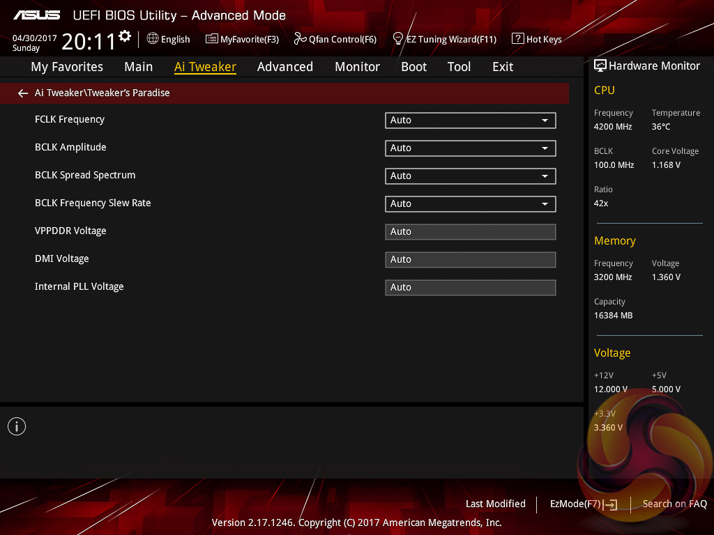 AI Tweaker is the UEFI tab which contains the vast majority of performance tuning settings pertaining to the CPU and DRAM. From here you can set XMP profiles, overclock the CPU, set all the various voltages and voltage operation modes, change the Load Line Calibration and considerably more.