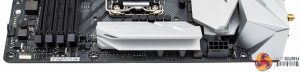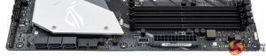 The second 12V G R B LED header is located at the top of the board near the memory lanes. ASUS, unlike some motherboard vendors, provides dual CPU fan headers as well as a water pump header to cater for users with dual fan AIO liquid coolers.