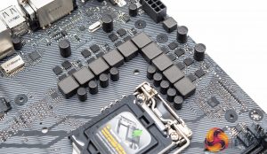 Around the CPU socket are two separate aluminium heatsinks with VRM cooling duties. There's no copper heat pipes in sight as these are reserved for higher-end SKUs. The CPU power supply is catered for with an 8 pin EPS power input.