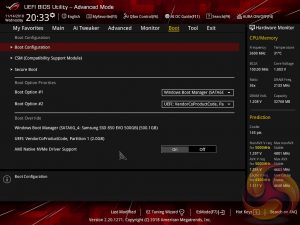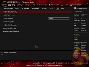 The Boot tab is as expected in delivering the key boot options such as secure boot, boot priority and boot compatibility options. Users needing to update the UEFI (via the EZ Flash Utility), save, import or export BIOS settings, or secure erase a storage drive should refer to the Tool tab.