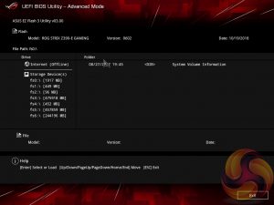 The EZ Flash utility is very simple to use and allows the UEFI to be updated from either a local disk or the internet over the Intel I219V Gigabit Ethernet adapter.