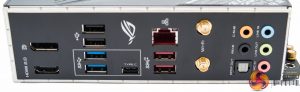The rear I/O cover, impressively, is metal in its entirety so all of it represents cooling surface area for the VRMs. The VRM heatsink and I/O cover merge into a single piece.