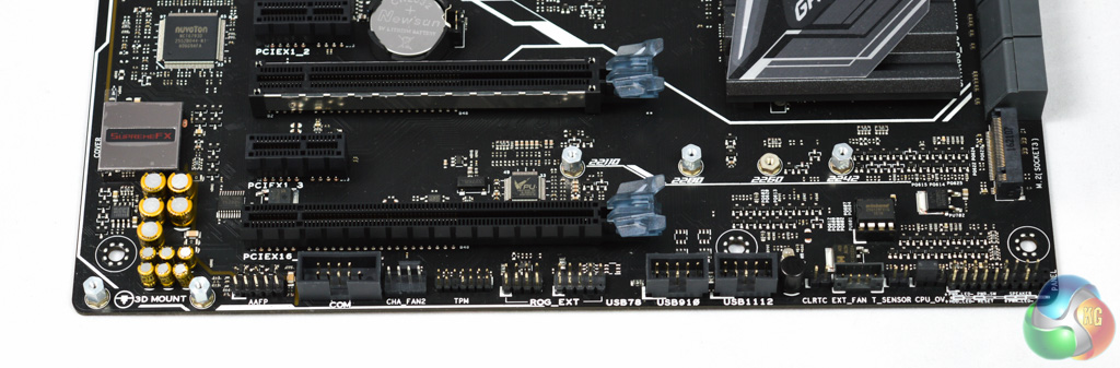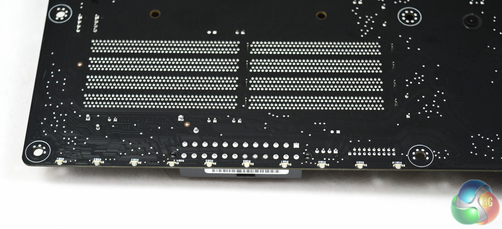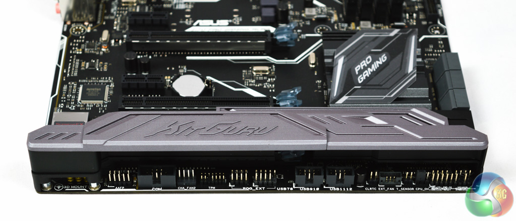 On the underside of the motherboard is the strip of RGB LEDs , ten in total, which are configurable using the ASUS AURA software.