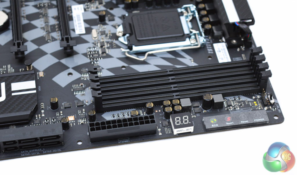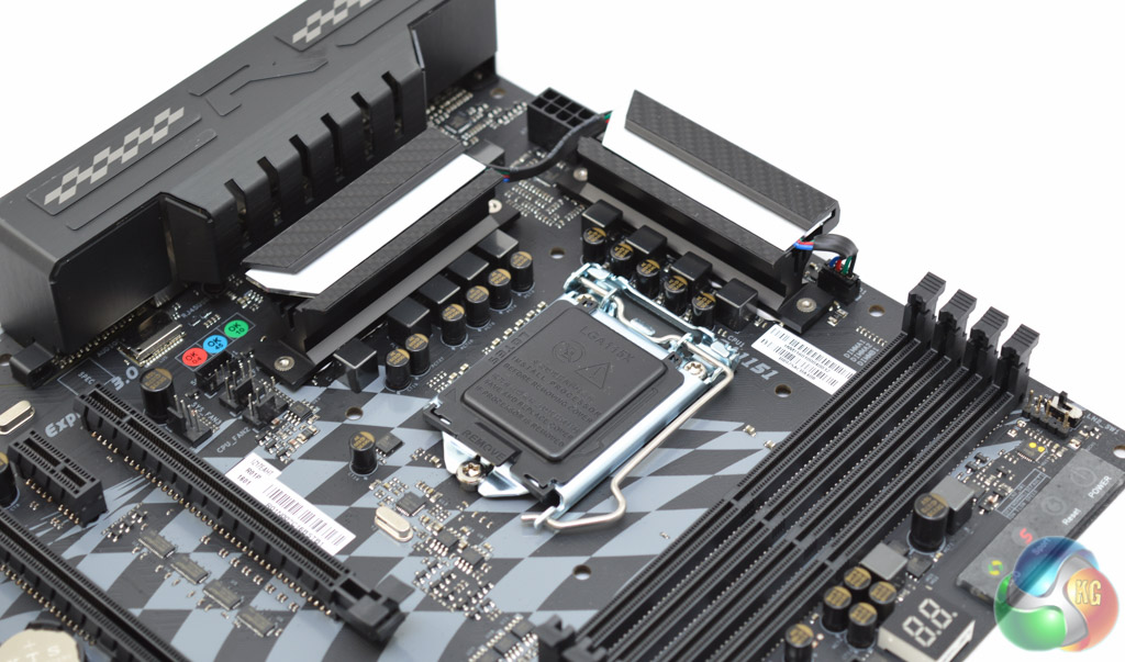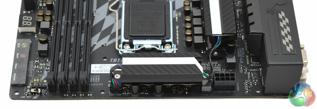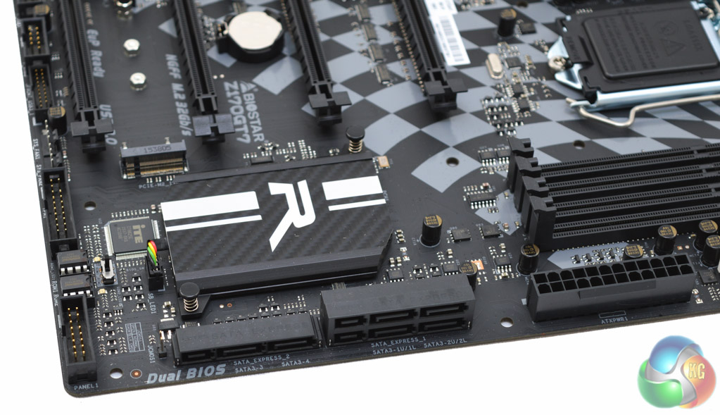 Down near the chipset heatsink, which has a “carbon fibre style” wrap, you'll find all six SATA ports are incorporated into SATA Express ports.