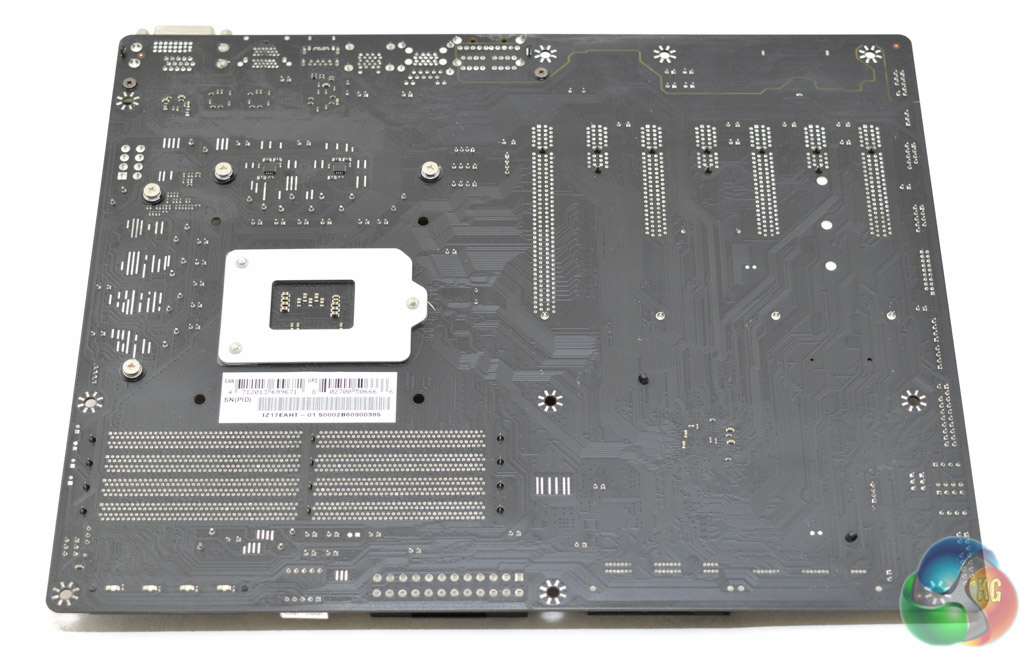 Underneath the motherboard is a clearer view at the electrical wiring of the PCIe lanes. It's also possible to see that only the CPU heatsinks are screwed into place, users looking to remove or alter the chipset heatsink will have to tread carefully with the pushpin system.