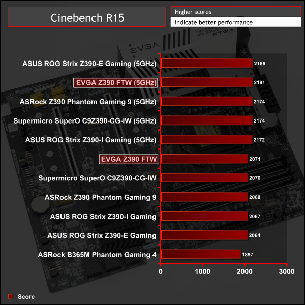 To test the EVGA Z390 FTW motherboard’s CPU overclocking potential, we set the CPU core voltage no higher than 1.3V and push for the highest stable clock speed. We maintain the DRAM frequency at 3200MHz to take memory stability out of the overclocking equation.