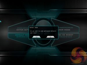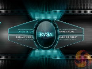 The EVGA Z390 FTW UEFI enters onto a 4-option splash screen. The “Enter Setup” option will take the user into the traditional BIOS environment, “Default Mode” loads optimised defaults while “Gamer Mode” applies a pre-calculated 4.9GHz overclock profile (to an i9-9900K).