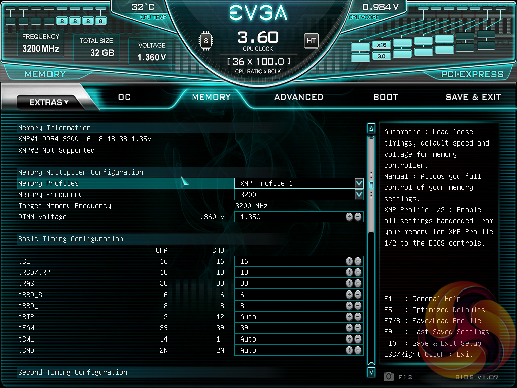 The memory tab is where the user would set XMP profiles, memory frequency, timings and voltages.