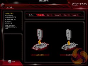 The Gigabyte Q-Flash BIOS update utility sits in its own interface separate from the main UEFI, and is a rather tidy implementation that works well.
