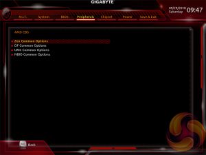 Within the AMD CBS section are four separate sub-menus of options specific to the Ryzen CPU and its functionality.