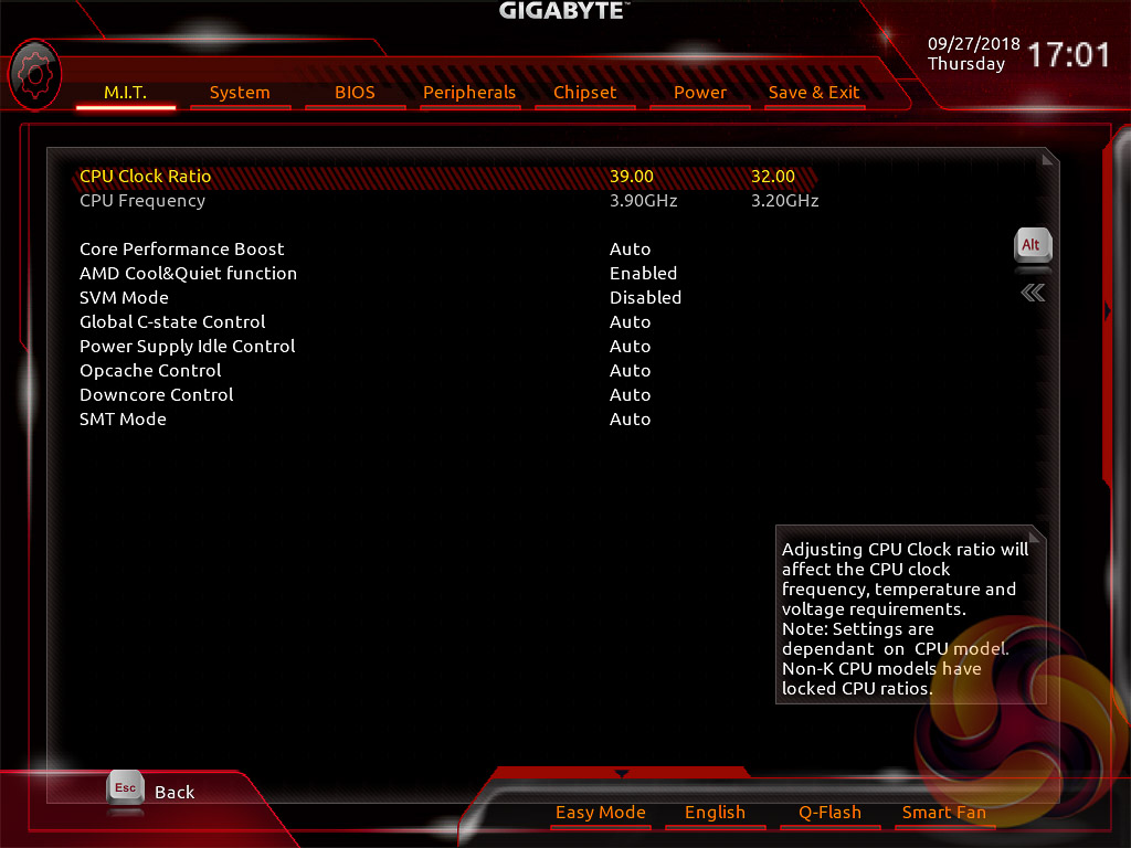 The fact the user has to keep tabbing back and forth between the various menus of the M.I.T makes the tweaking process a little tiresome. Gigabyte could still consider a more user-friendly layout that involves less menu management by simply presenting more options on each page with less nested sub-menus.