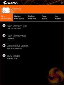 @BIOS is Gigabyte’s within-Windows BIOS updating utility, and while it seems to work okay, given the risks of updating from within a Windows environment we’d recommend using the UEFI Q-Flash utility. In any case, it’s slick enough and very easy to use. BIOS setup allows some of the parameters of the BIOS to be set from within Windows.
