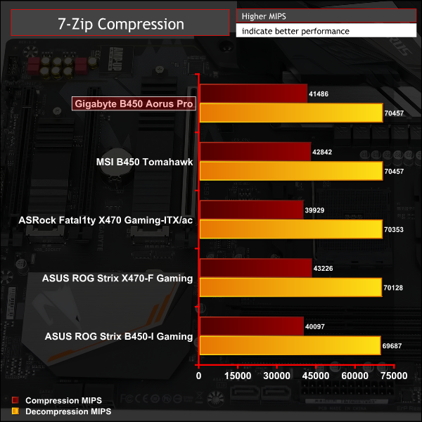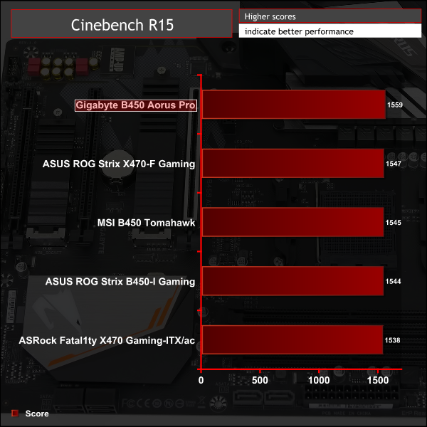 CPU performance was a little ahead of other motherboards for the Gigabyte B450 Aorus Pro, it seemed to have an average all-core Turbo frequency 30MHz higher than other motherboards which is enough to make a difference – though we're not sure why it reached higher frequencies.