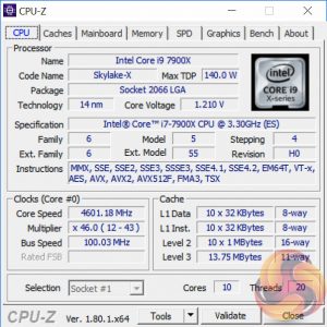 Overclocking was simple and we were able to easily achieve 4.6GHz using 1.2 volts. Any more frequency gains required pushing voltage further and that lead to unacceptable temperatures, read more about our i9 7900X overclocking experiences here.